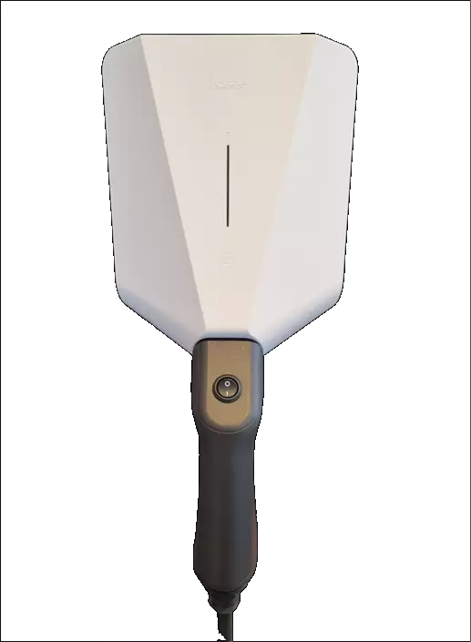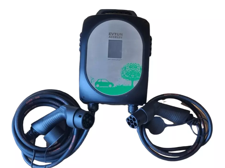 Henges opp hjemme og kobles direkte til eksisterende ladestasjon uten behov for elektriker. Skal en på tur hektes den enkelt av veggfestet og tas med i bilen.