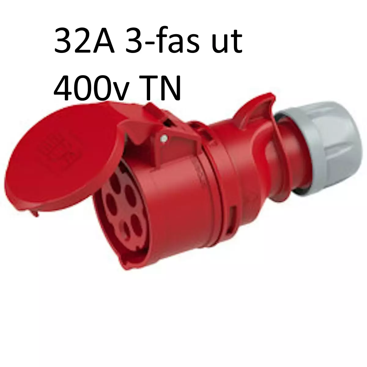 Overgang fra rød CEE 32A 3-fas industrikontakt til rød 16A 3-fas industrikontakt. For 400 volt TN anlegg.