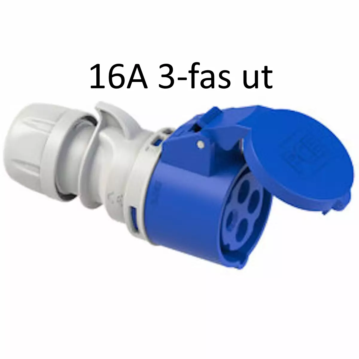 Overgang fra blå CEE 32A 3-fas industrikontakt til blå 16A 3-fas idustrikontakt.